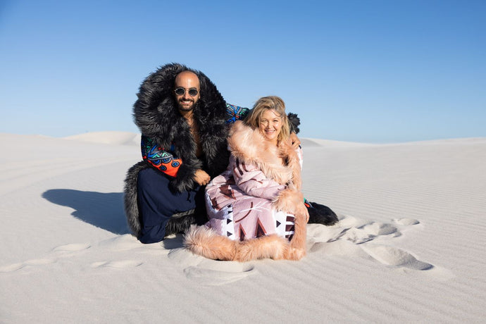 Created by South African designer, musician and DJ, Che Cherry, our garments were originally designed for the utopian land that is AfrikaBurn in the Karoo desert. In that otherworldly place, Che’s creativity collided with Nicolas’ wild spirit and a bold vision came into being.