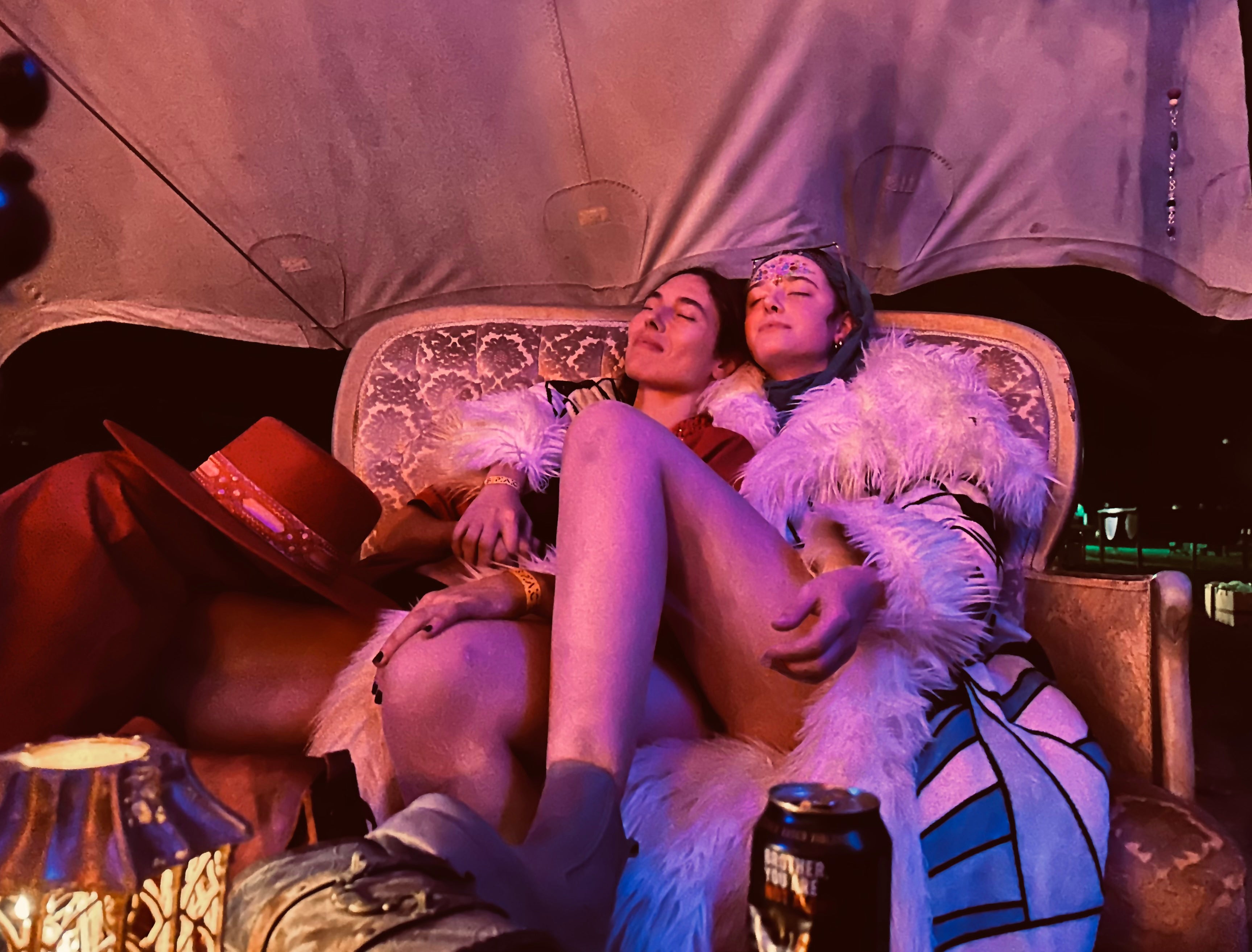 " There are garments that are part of the story and others that make the story. My Checherry coat instigated our best burn memories: it was our mattress to lie down on and gaze at the stars, it was our tent when the wind came blowing, it sank me in warm furry bear-hugs in the cold desert nights, it swayed with our mood and set the tone to the party oscillating from bright and colorful to deep and centered. It is a communal piece, meant to envelope and bring together people from all walks of life united to become legends for the length of a night. "
