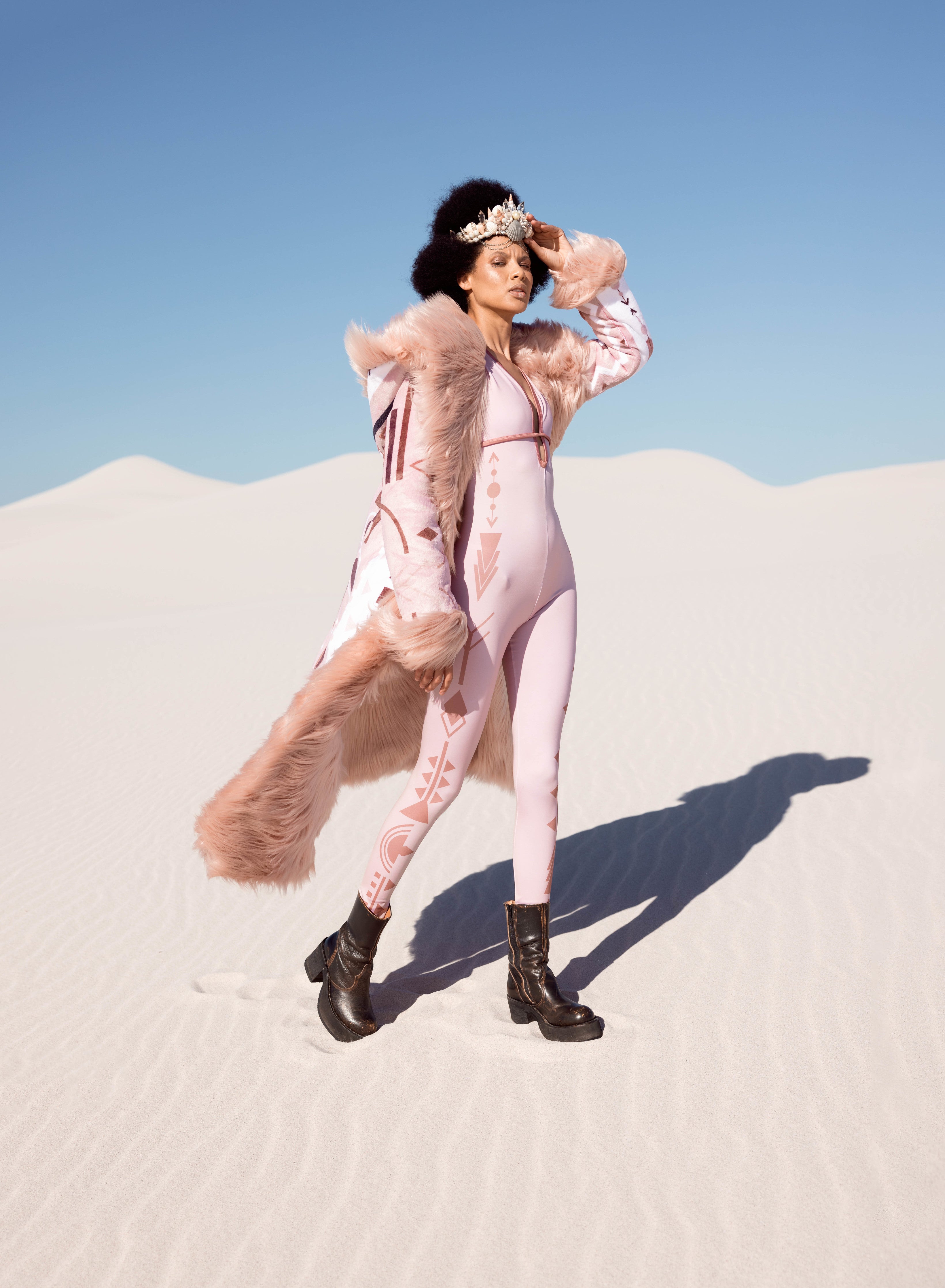 " If you are going to own one staple for your burn wardrobe, the coat is the one. No matter what I was wearing under (…even nothing at all 😉), this coat kept me warm and cosy deep into the early morning. Endlessly versatile, the all fur side is super chic, while the reversible pattern side brings the fun. I got SO many compliments while wearing it and as someone who runs cold, it truly was a life saver.