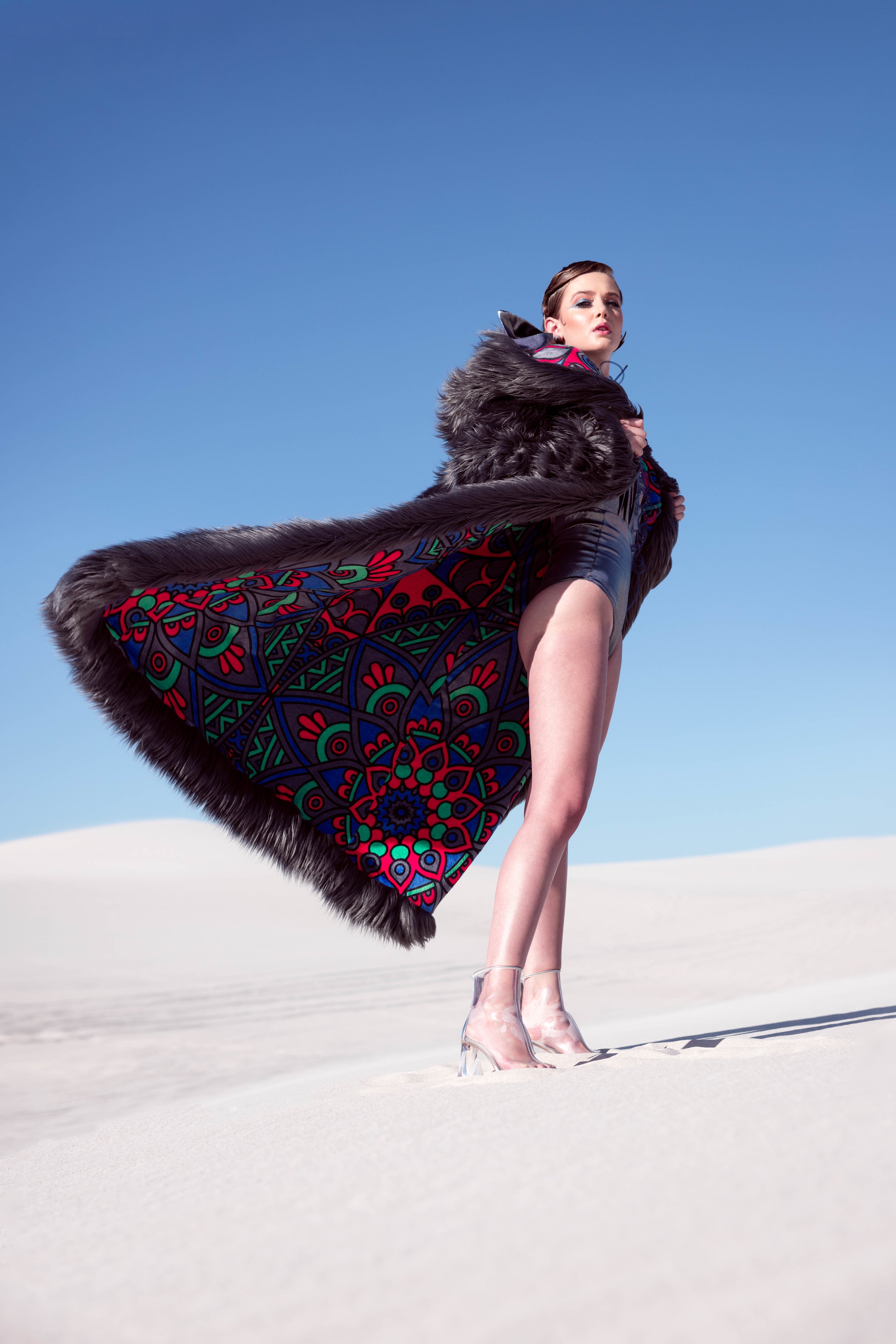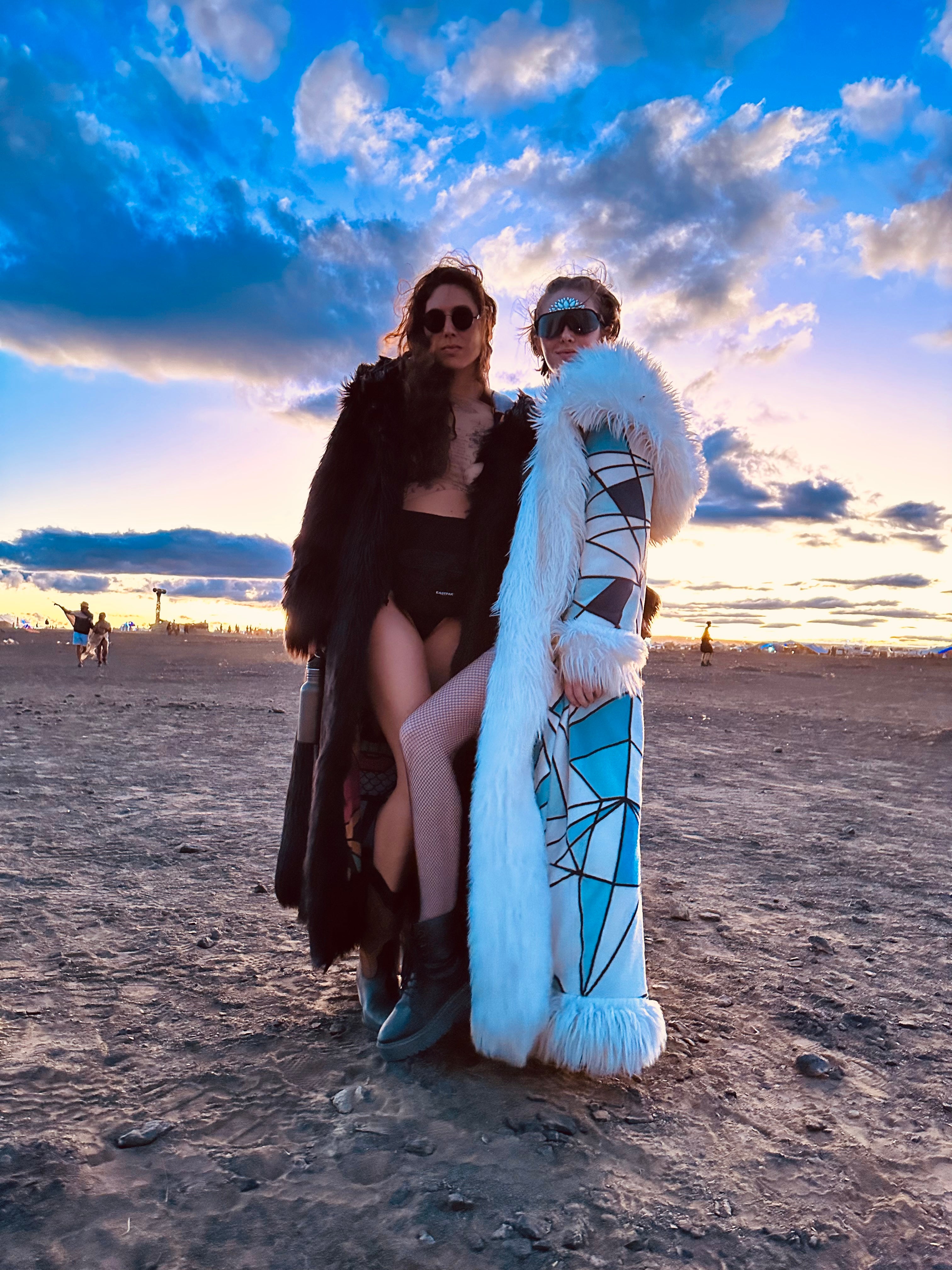 Experience unparalleled comfort and warmth as you traverse the vast Playa, enveloped in the embrace of our meticulously crafted reversable festival coats. We understand that endurance and comfort go hand in hand, which is why we've spared no effort in designing coats that withstand the elements without compromising on style. Our coats are carefully constructed using high-quality materials, ensuring durability and longevity.