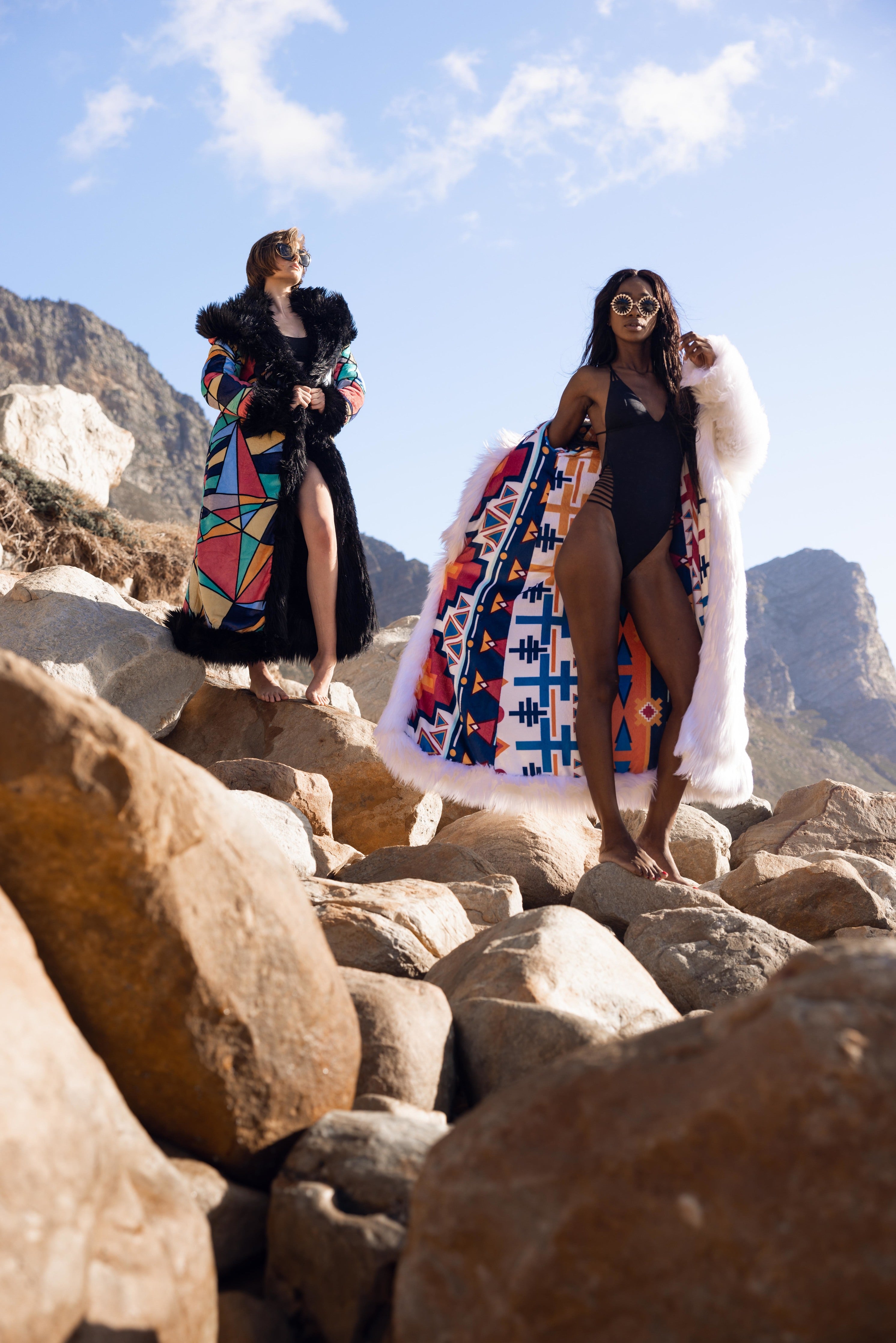 Our reversable coats allow you to explore two facets of the garments, two facets of your personality. Wear it on the furry side for a powerful feel or on the more playful side with its intricate patterns and vibrant colours. Either way make sure to find the hidden pockets, that will always come handy.