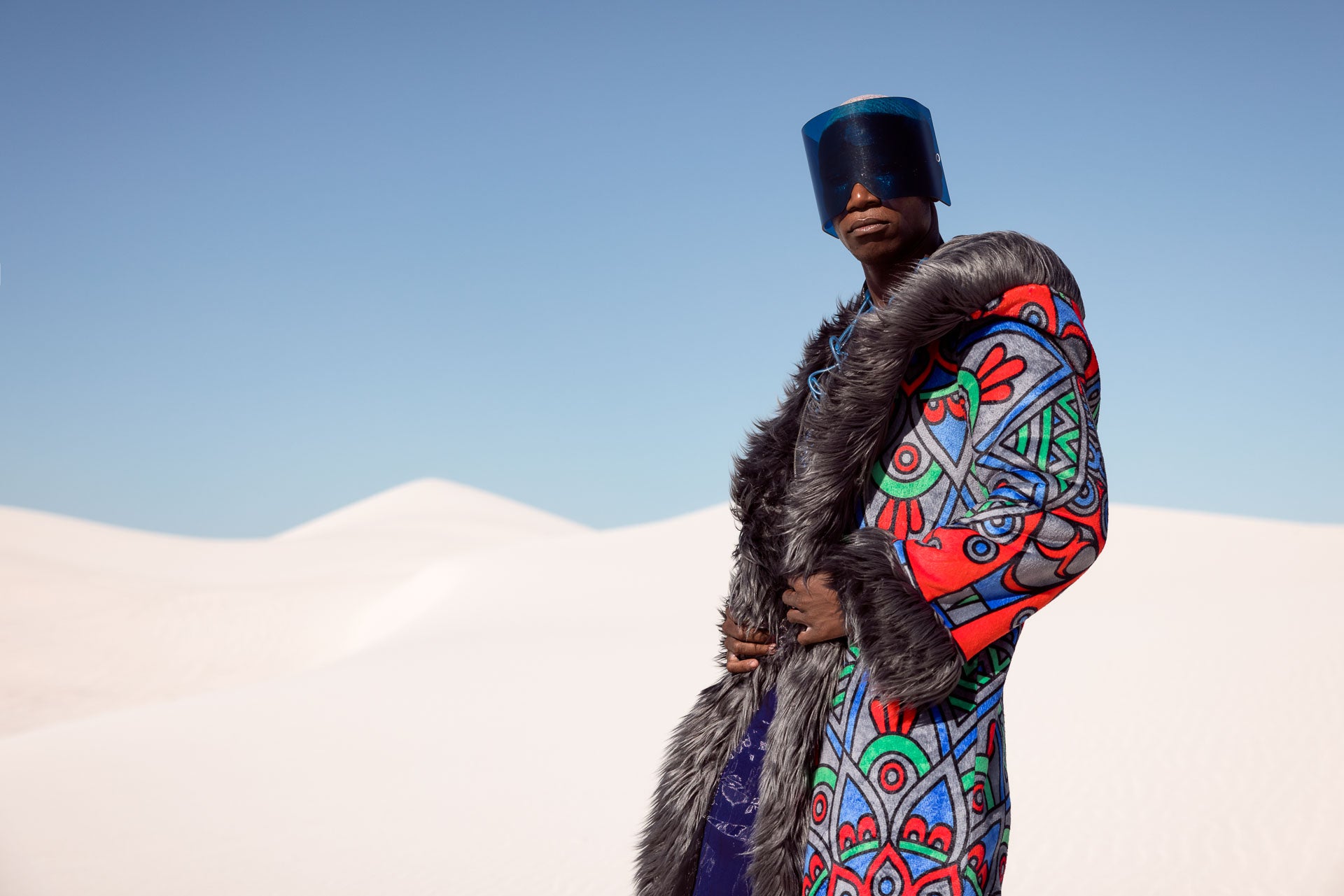 " There are garments that are part of the story and others that make the story. My Che cherry coat instigated our best burn memories: it was our mattress to lie down on and gaze at the stars, it was our tent when the wind came blowing, it sank me in warm furry bear-hugs in the cold desert nights, it swayed with our mood and set the tone to the party oscillating from bright and colorful to deep and centered. It is a communal piece, meant to envelop and bring together people from all walks of life united to become legends for the length of a night. "