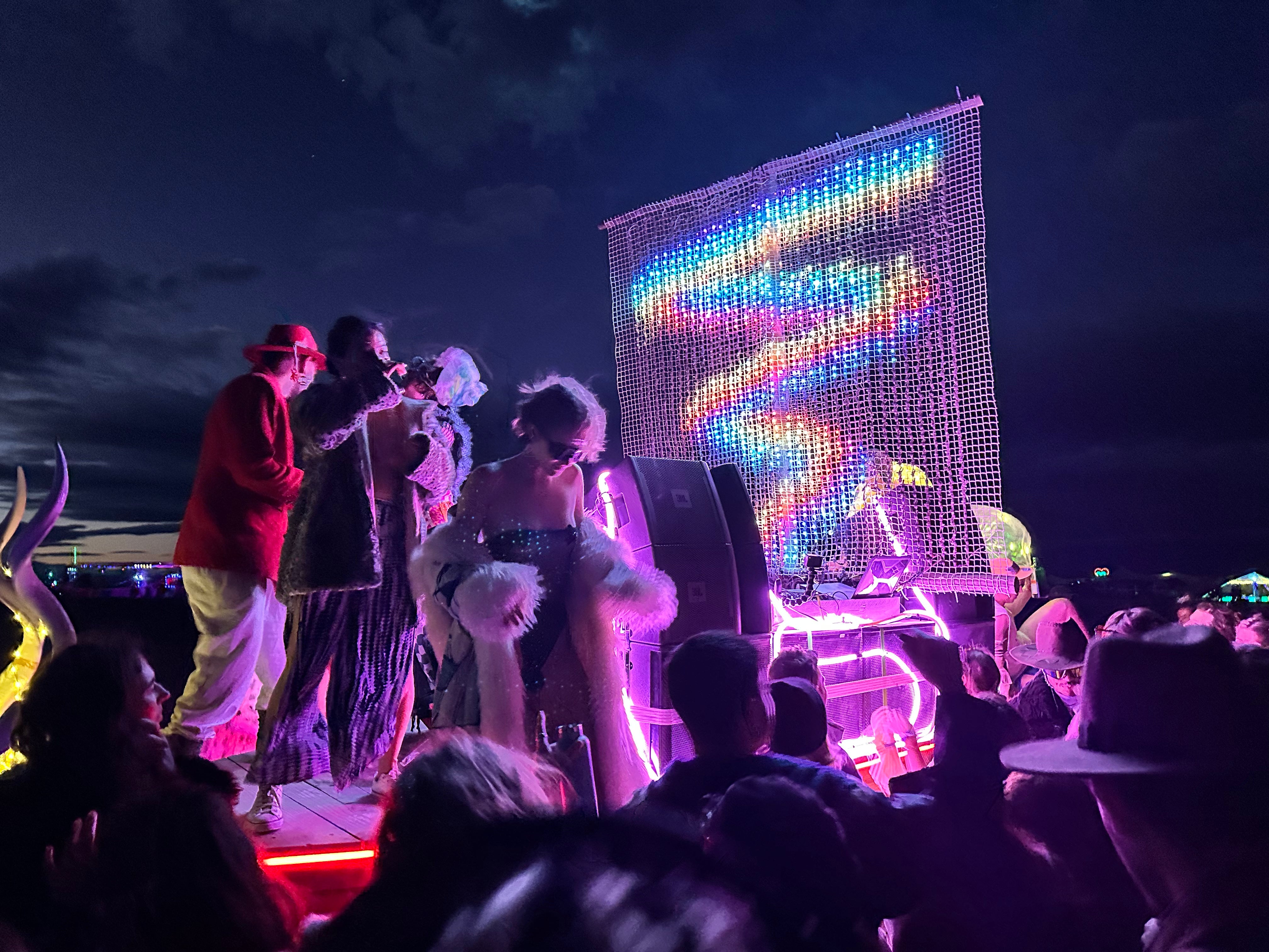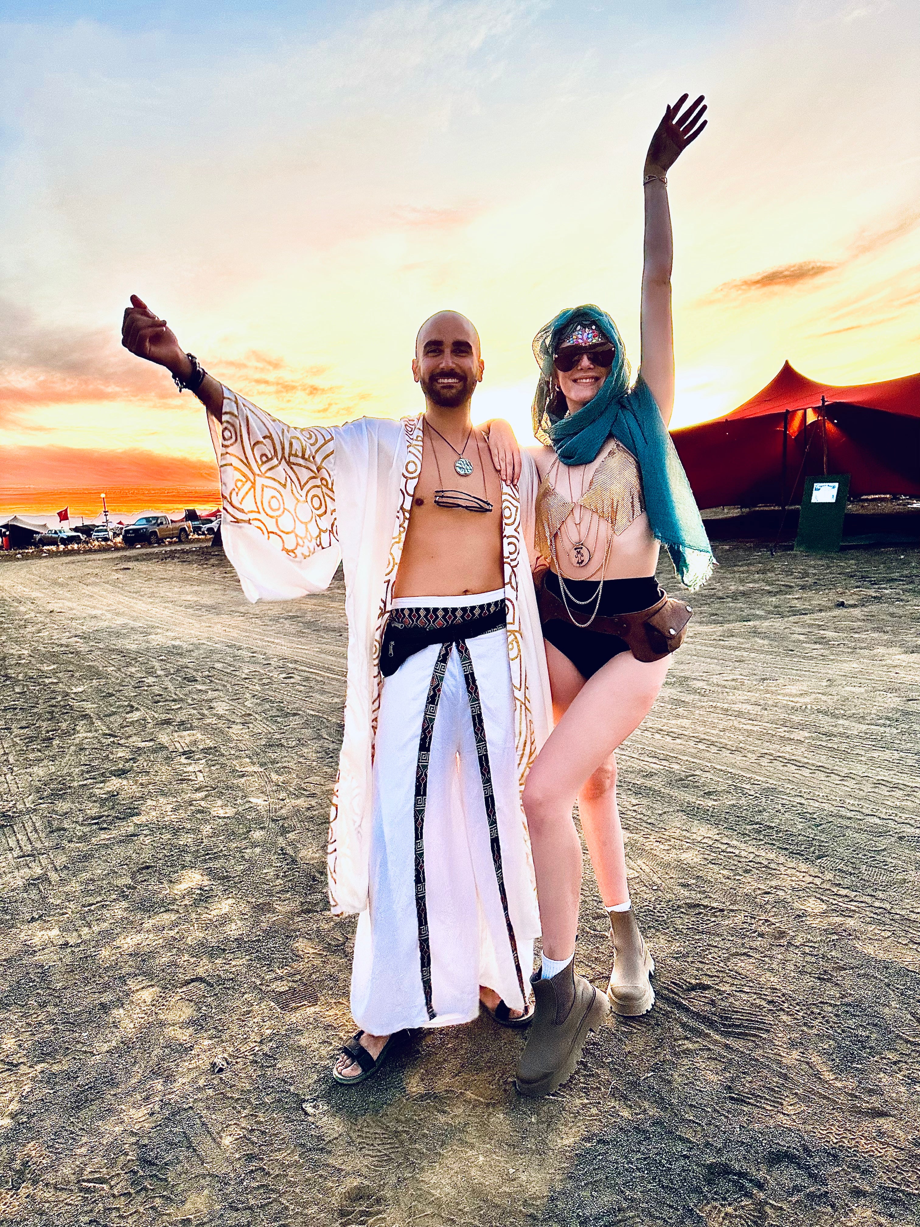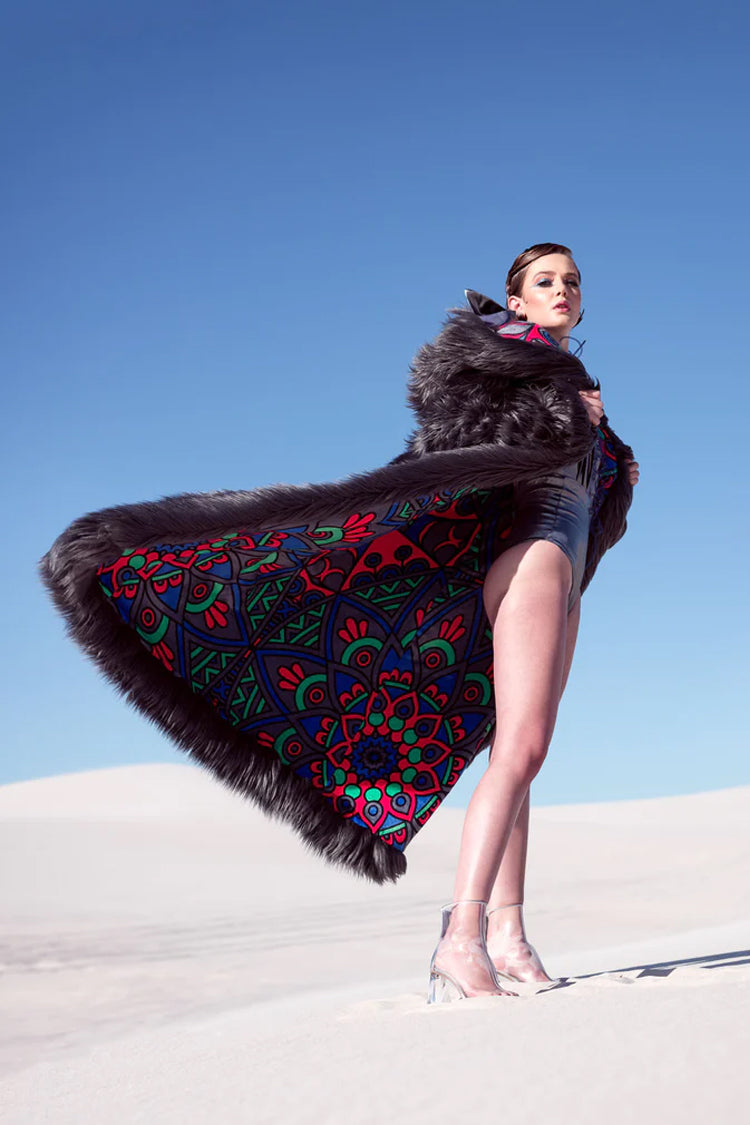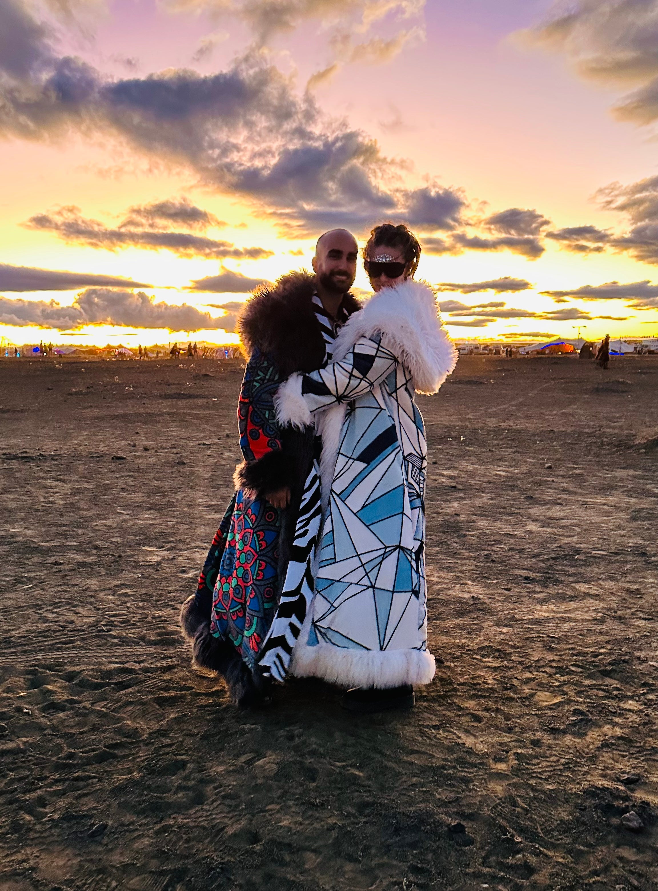 " If you are going to own one staple for your burn wardrobe, the coat is the one. No matter what I was wearing under (…even nothing at all 😉), this coat kept me warm and cosy deep into the early morning. Endlessly versatile, the all fur side is super chic, while the reversible pattern side brings the fun. I got SO many compliments while wearing it and as someone who runs cold, it was truly was a life saver.